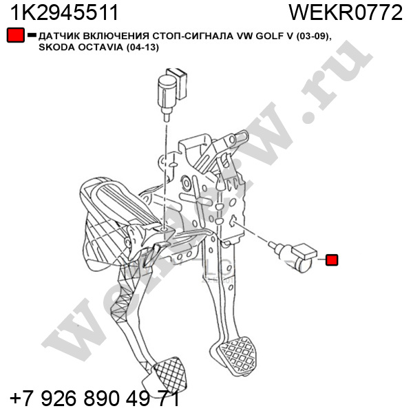 ДАТЧИК ВКЛЮЧЕНИЯ СТОП-СИГНАЛА VW GOLF V (03-09), SKODA OCTAVIA (04-13)