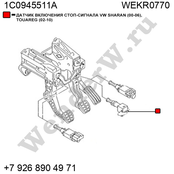 ДАТЧИК ВКЛЮЧЕНИЯ СТОП-СИГНАЛА VW SHARAN (00-06), TOUAREG (02-10)