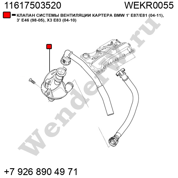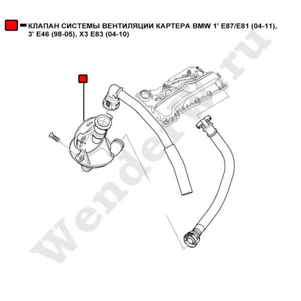 КЛАПАН СИСТЕМЫ ВЕНТИЛЯЦИИ КАРТЕРА BMW 1' E87/E81 (04-11), 3' E46 (98-05), X3 E83 (04-10)