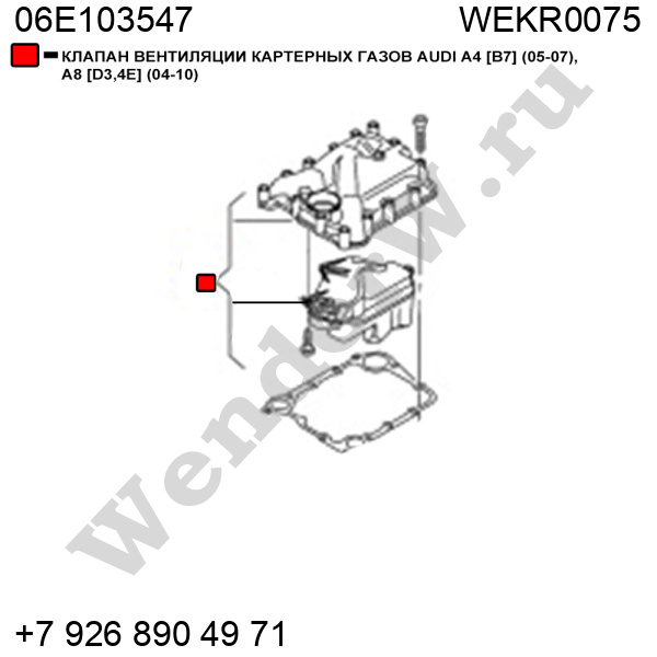 КЛАПАН ВЕНТИЛЯЦИИ КАРТЕРНЫХ ГАЗОВ AUDI A4 [B7] (05-07), A8 [D3,4E] (04-10)