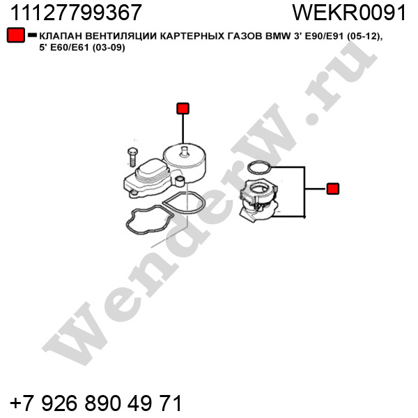 КЛАПАН ВЕНТИЛЯЦИИ КАРТЕРНЫХ ГАЗОВ BMW 3' E90/E91 (05-12), 5' E60/E61 (03-09)